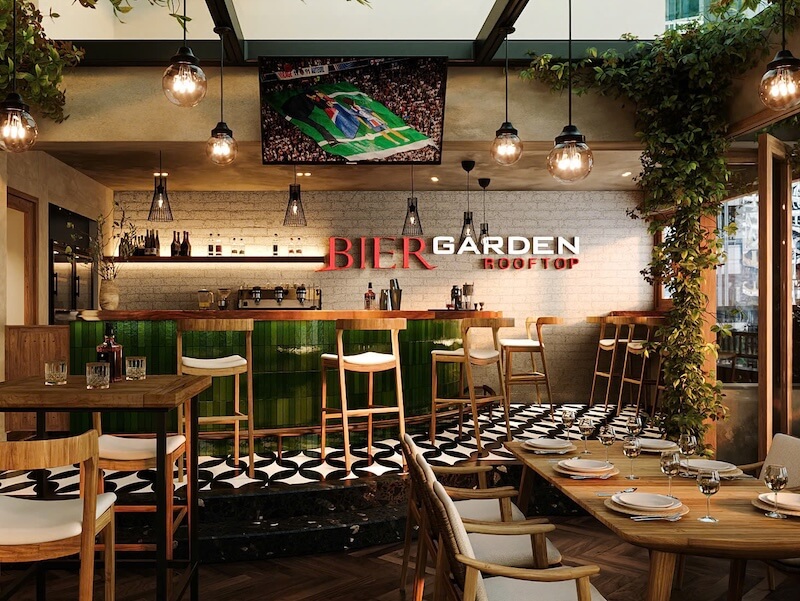 Located on the 15th floor at 56–66 Nguyen Hue, Saigon Ward, District 1, Bier Garden Rooftop offers a cozy yet breezy space in the heart of the city. From above, guests can admire the vibrant walking street, enjoy the refreshing breeze, and watch the sunset paint the skyline.